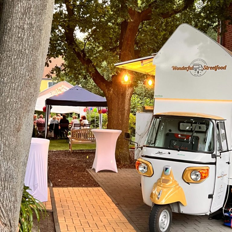 Stellt euch vor: laue Sommerabende, Lichterketten, fröhliche Gäste – und unser Classic Ape Foodtruck mitten im Geschehen. Bei Wonderful Streetfood verbinden wir die Leidenschaft für echtes Streetfood mit dem besonderen Flair eures Events. Ob romantische Hochzeit auf dem Landgut, ausgelassenes Firmensommerfest oder spontanes Gartenparty-Catering – wir bringen Geschmack, Atmosphäre und unkomplizierte Freude direkt zu euch.