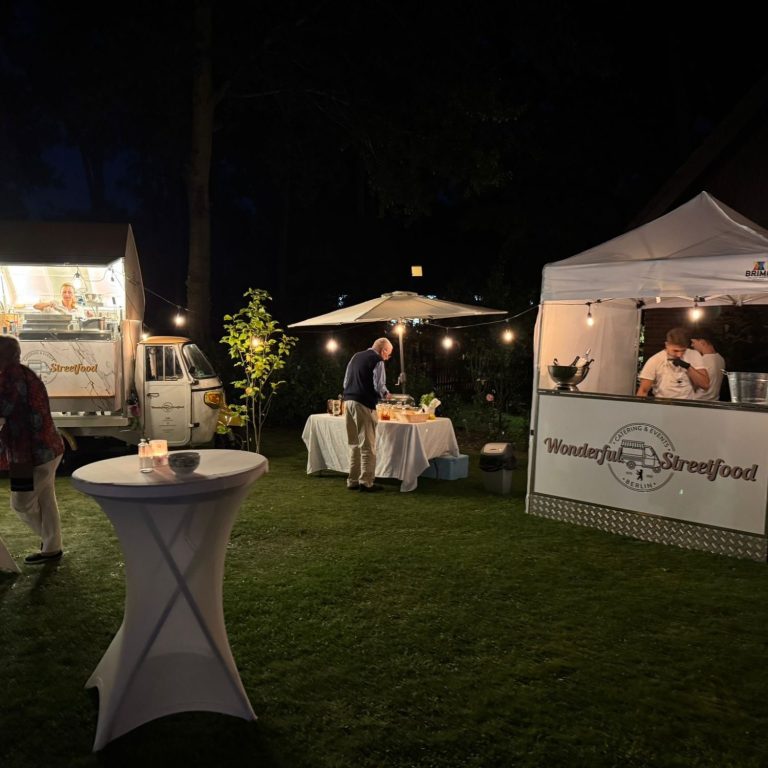 Sie planen eine Gartenparty, ein Firmensommerfest oder eine Feier unter freiem Himmel? Unser Foodtruck bringt das vollständige Sommermenü frisch zu Ihnen – egal ob Kleingartenanlage in Pankow, Landhausgarten in Potsdam oder Gutshof.