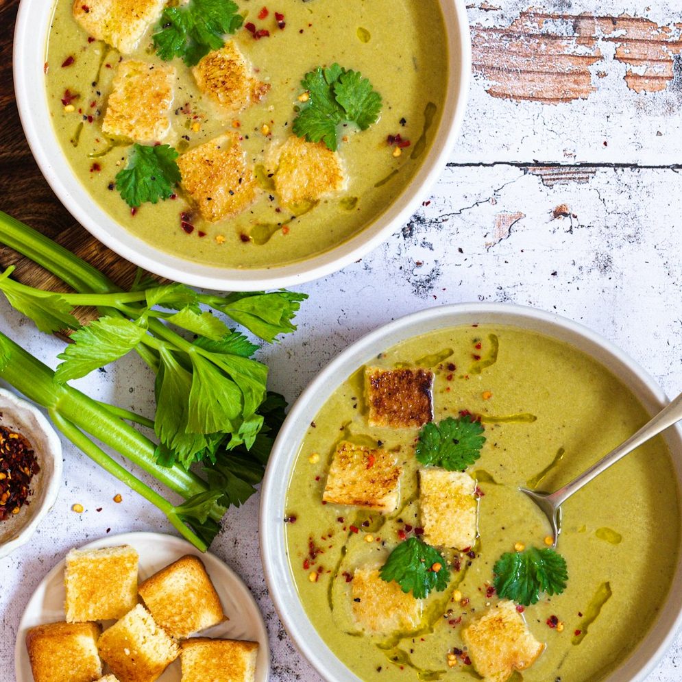 Vorspeise: Kürbis-Ingwer-Suppe mit gerösteten Kernen oder klassische Kartoffel‑Lauch Suppe