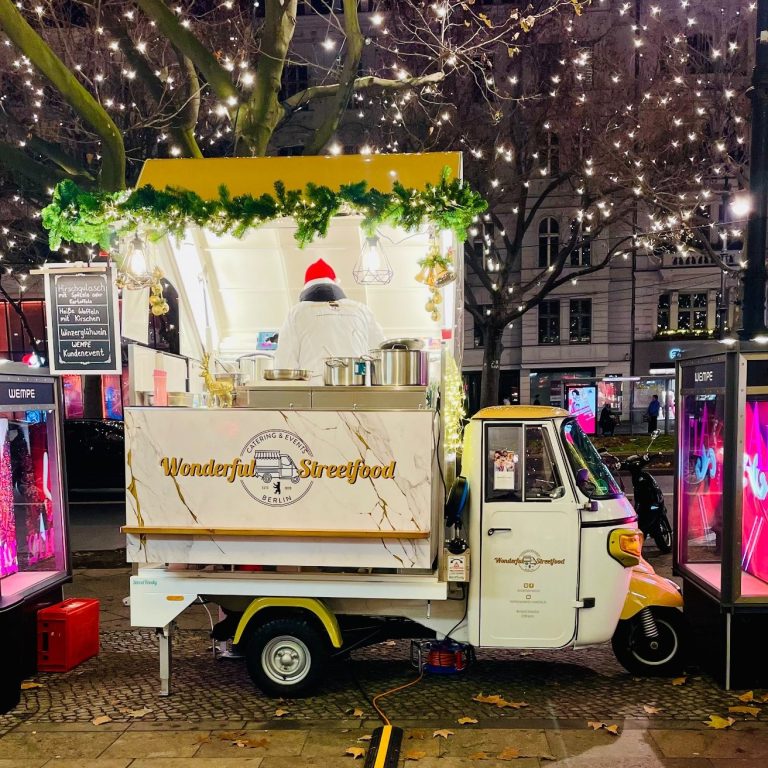 Unsere stilvolle APE Piaggio Classic ist der charmante Mittelpunkt für besondere Events in Berlin und Umgebung. Ob Firmenfeier, Sommerfest, Hochzeit oder private Feier – wir bringen außergewöhnliches Streetfood-Catering dorthin, wo Sie feiern.
